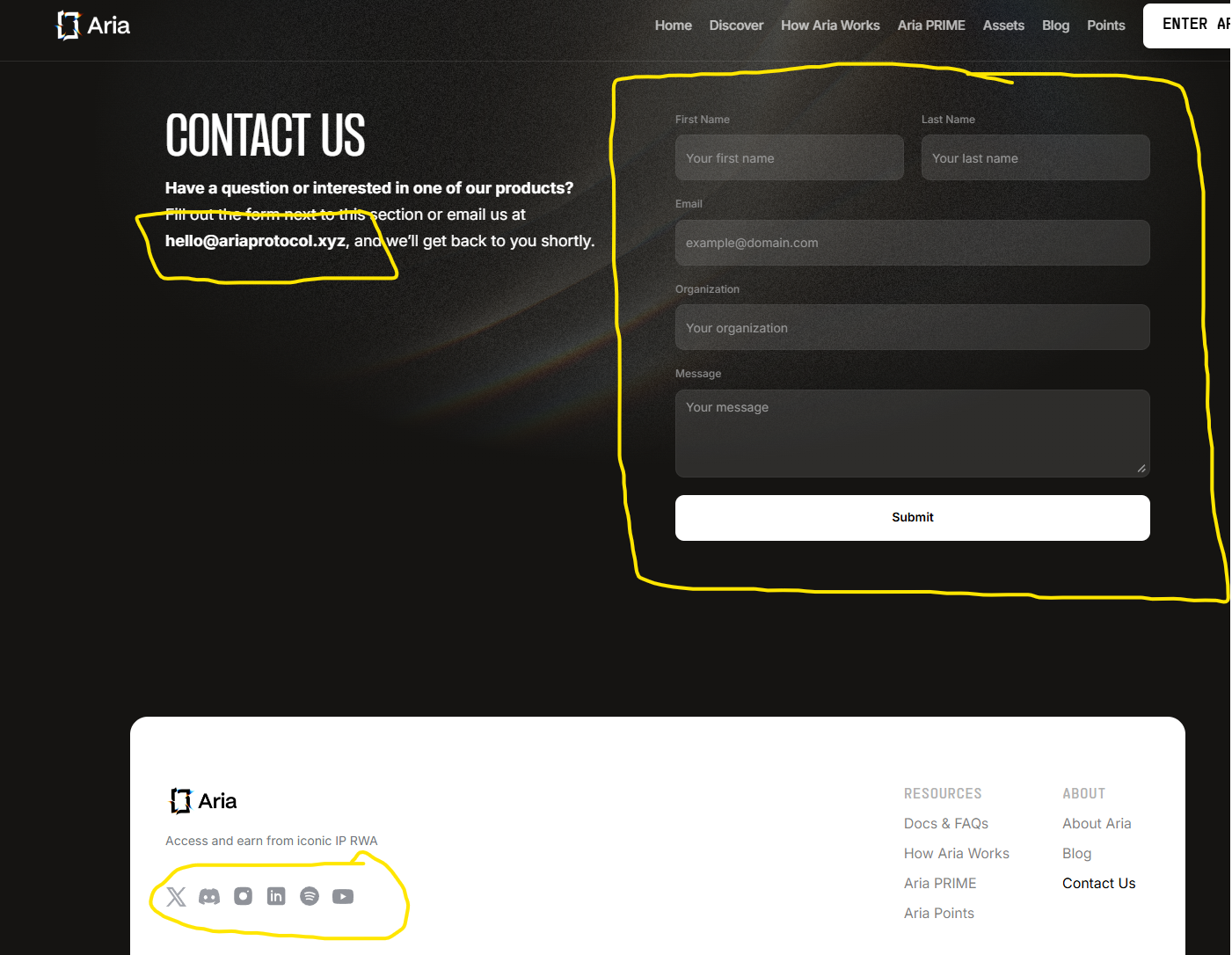 Some of the companies listed will have a LinkedIn page, and some won’t. Google them first, in this instance we see a contact form, social links to Linkedin, X and Discord as well as some others.